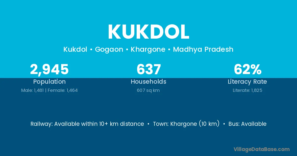 Khargone (10 km) is the nearest town to Kukdol village for major economic activities and is located approximately 10 km away.