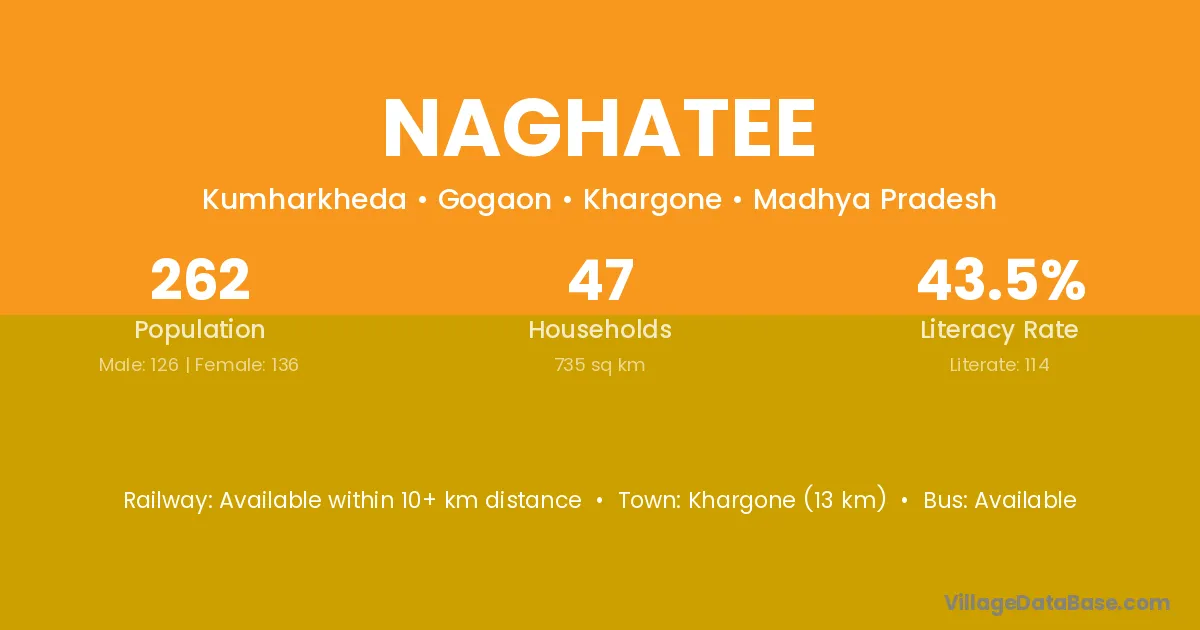 Khargone (13 km) is the nearest town to Naghatee village for major economic activities and is located approximately 13 km away.