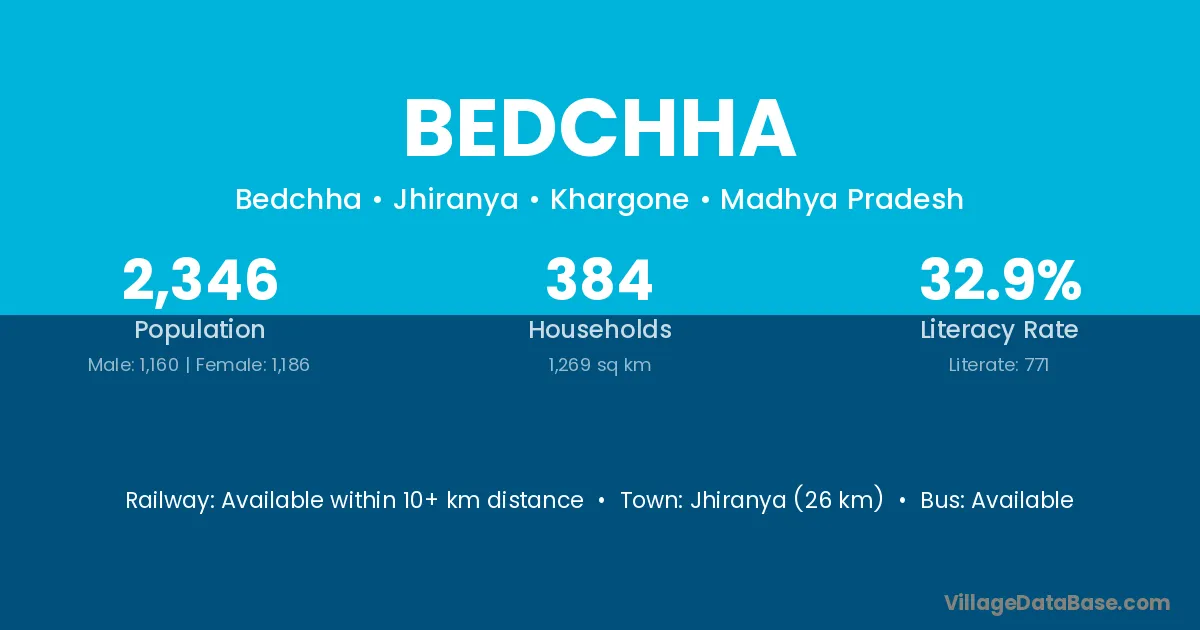 Bedchha village is located in the Jhiranya Tehsil of the Khargone district in Madhya Pradesh .
