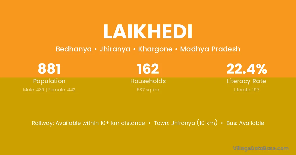 Laikhedi village has a total population of 881 people, of which 439 are males and 442 are females.