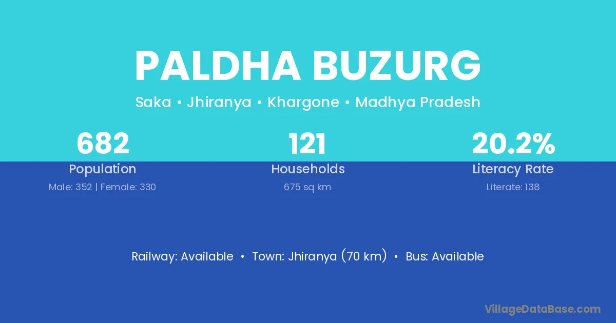 Paldha Buzurg village has a total population of 682 people, of which 352 are males and 330 are females.
