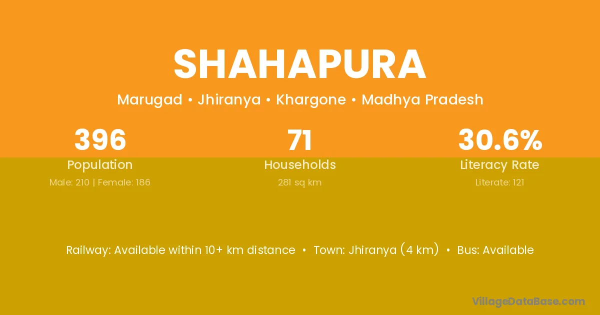 Jhiranya (4 km) is the nearest town to Shahapura village for major economic activities and is located approximately 4 km away.
