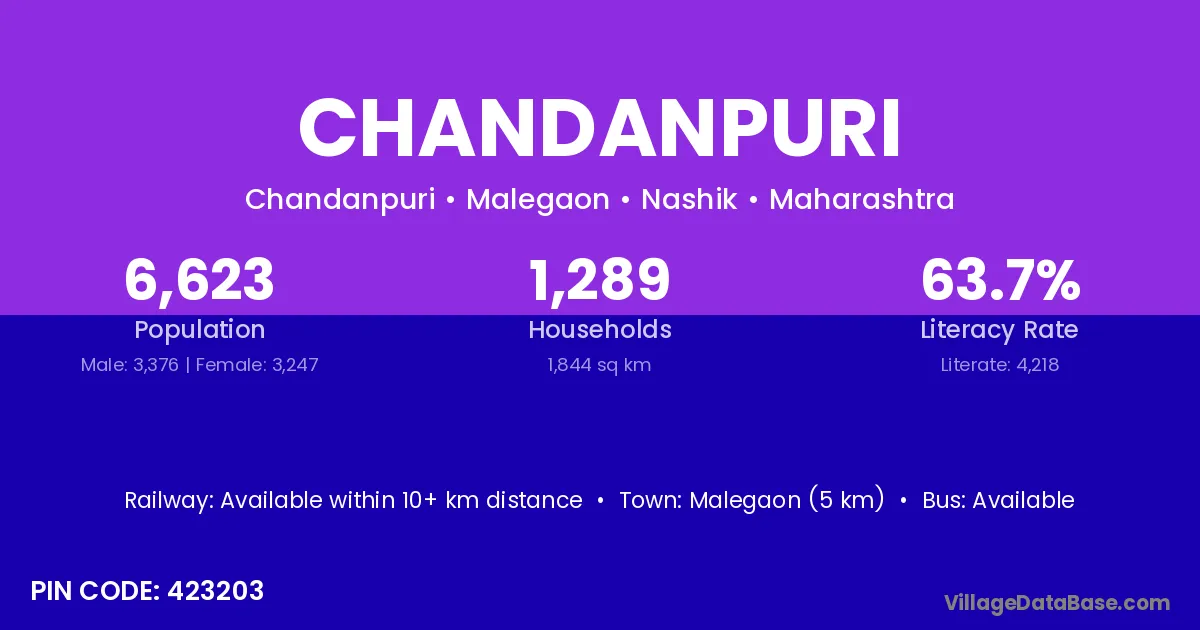 Kasrawad (19 km) is the nearest town to Chandanpuri village for major economic activities and is located approximately 19 km away.