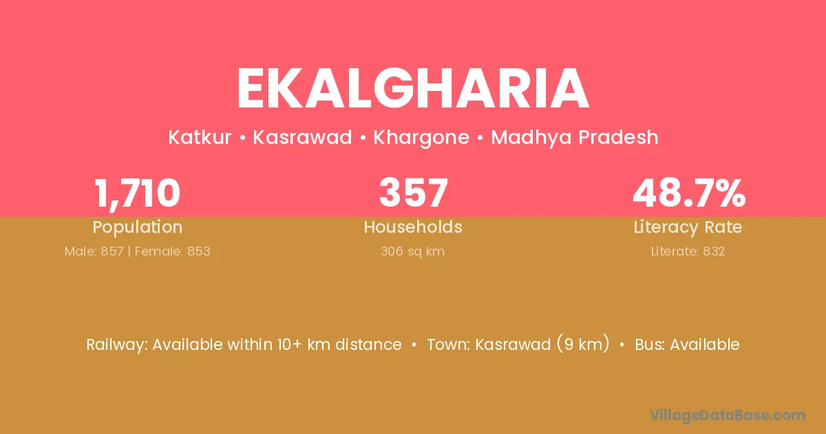 Kasrawad (9 km) is the nearest town to Ekalgharia village for major economic activities and is located approximately 9 km away.