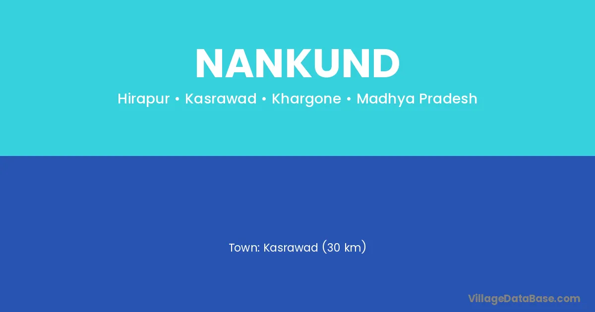 Kasrawad (30 km) is the nearest town to Nankund village for major economic activities and is located approximately 30 km away.