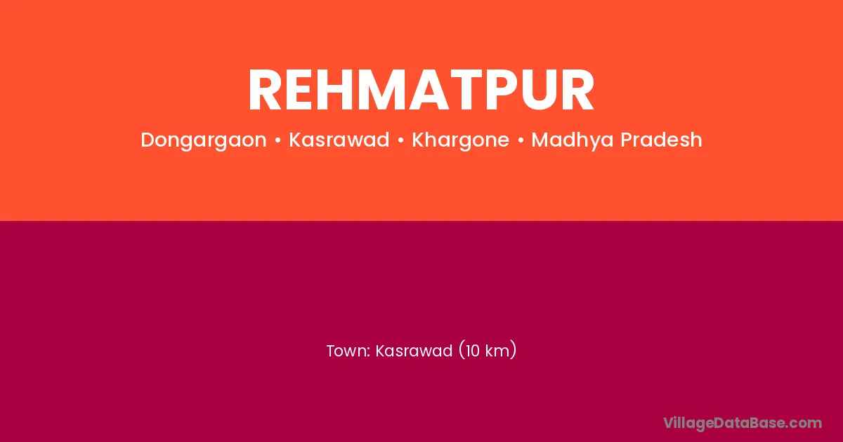 Kasrawad (10 km) is the nearest town to Rehmatpur village for major economic activities and is located approximately 10 km away.