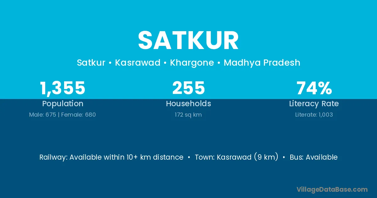 Kasrawad (9 km) is the nearest town to Satkur village for major economic activities and is located approximately 9 km away.