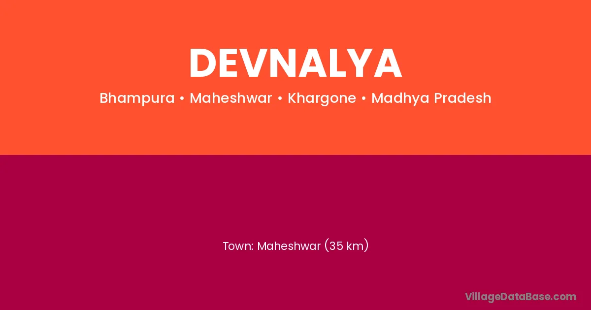 Maheshwar (35 km) is the nearest town to Devnalya village for major economic activities and is located approximately 35 km away.