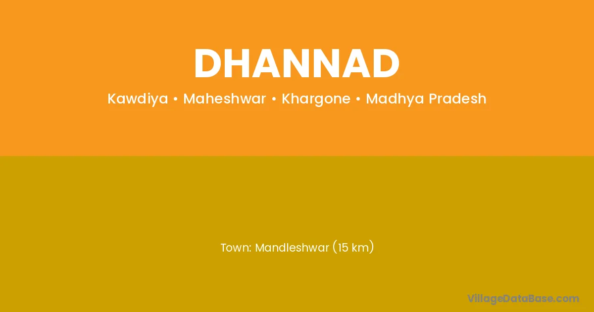 Mandleshwar (15 km) is the nearest town to Dhannad village for major economic activities and is located approximately 15 km away.