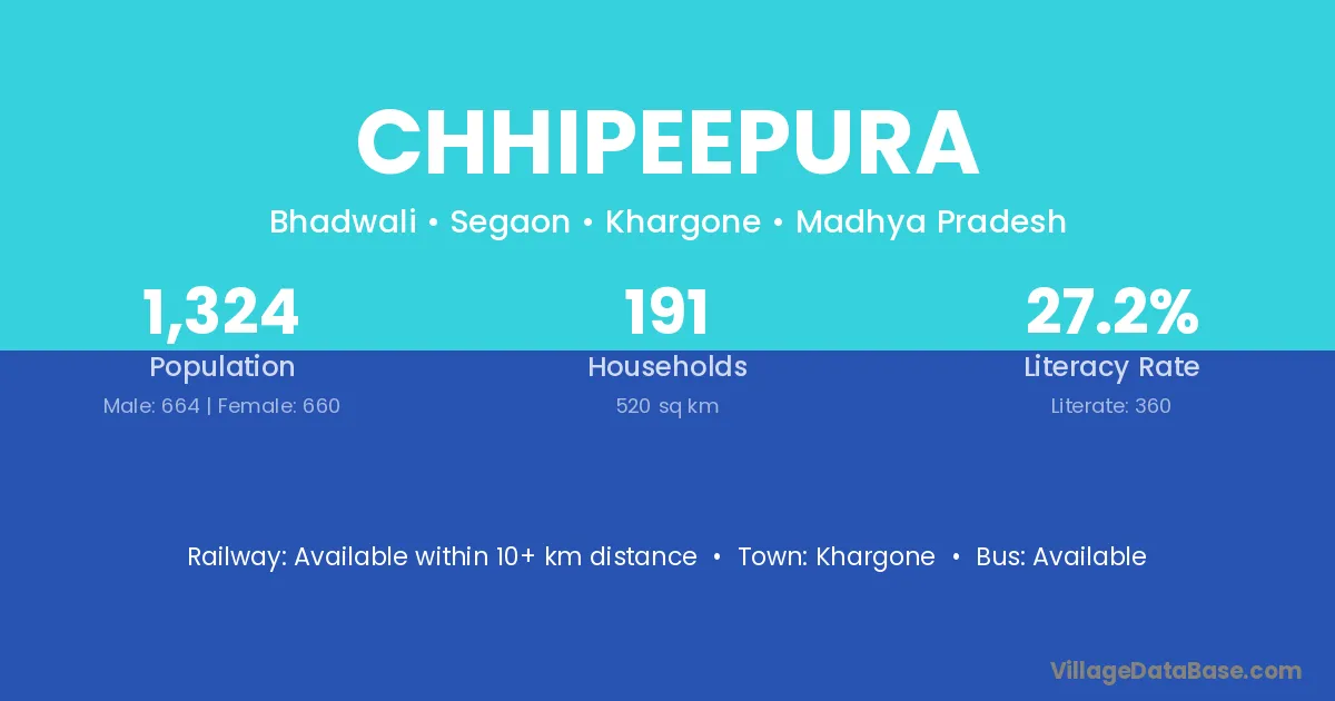 Khargone is the nearest town to Chhipeepura village for major economic activities