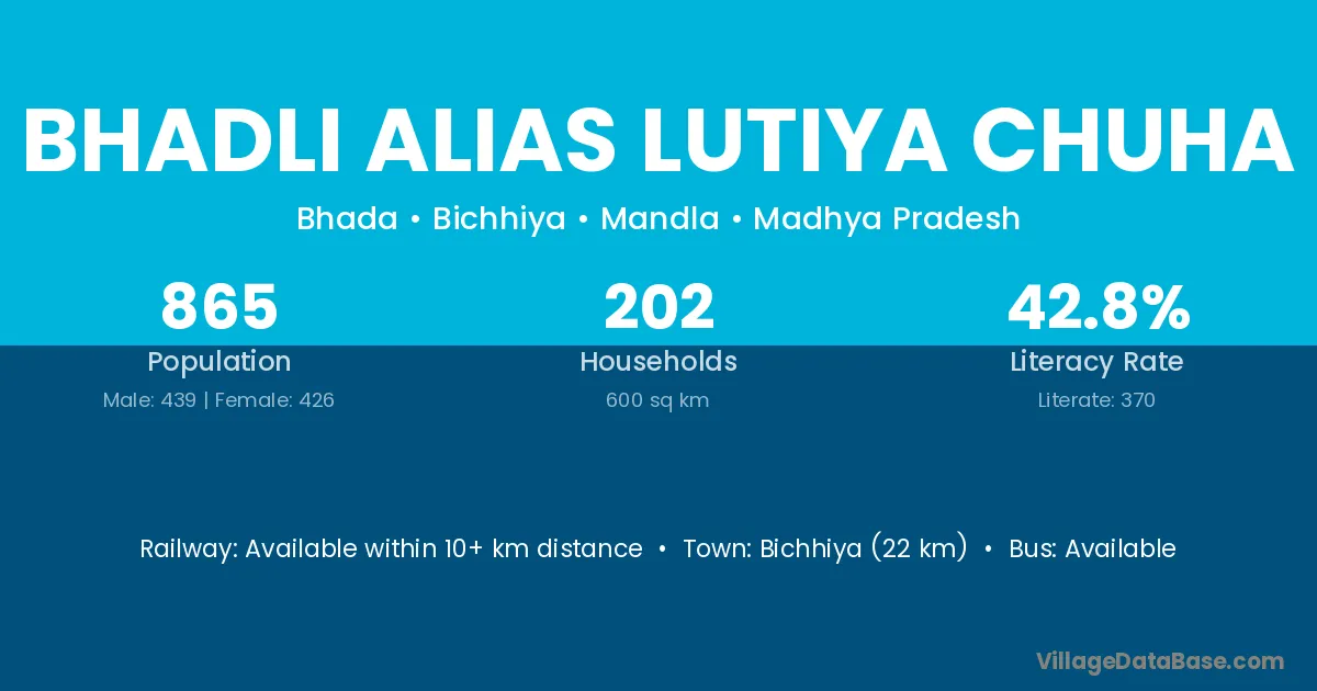 Bhadli Alias Lutiya Chuha village has a total population of 865 people, of which 439 are males and 426 are females.