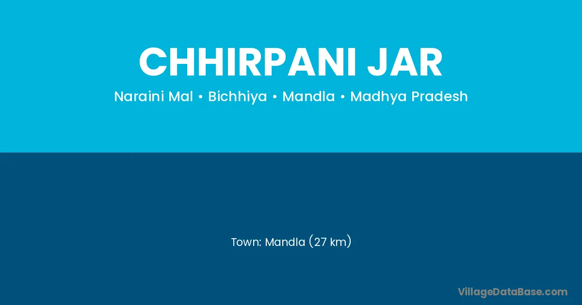 Mandla (27 km) is the nearest town to Chhirpani Jar village for major economic activities and is located approximately 27 km away.