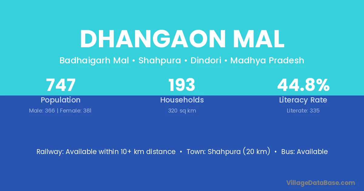 Dhangaon Mal village has a total population of 655 people, of which 324 are males and 331 are females.