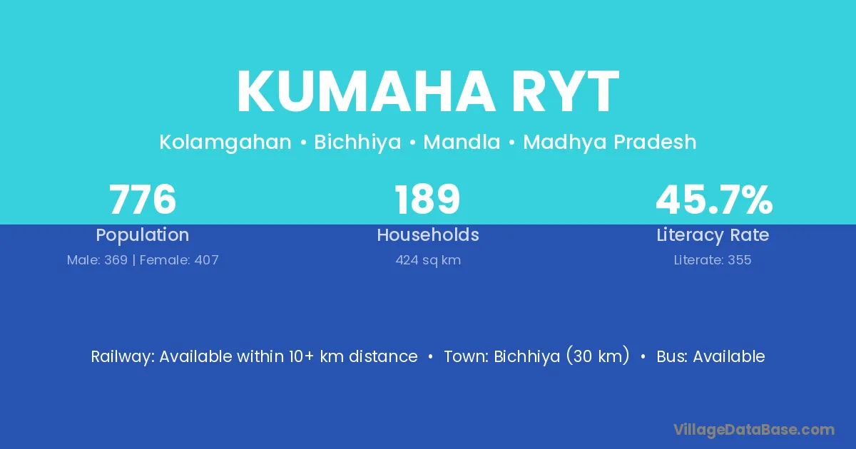 Bichhiya (30 km) is the nearest town to Kumaha Ryt village for major economic activities and is located approximately 30 km away.