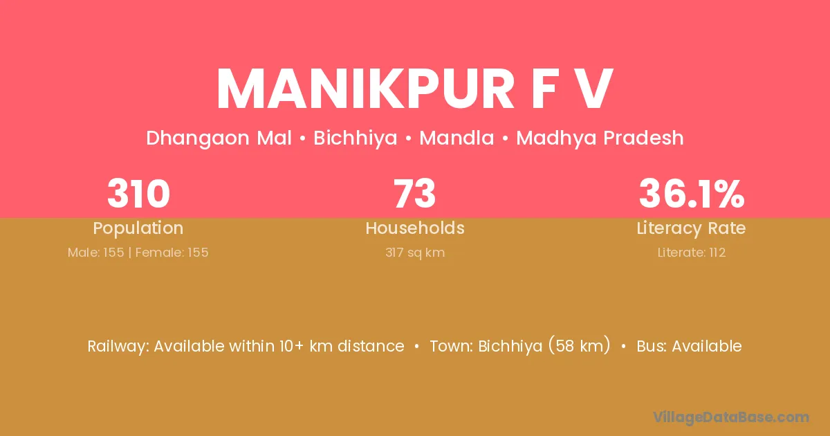 Manikpur F V village has a total population of 310 people, of which 155 are males and 155 are females.