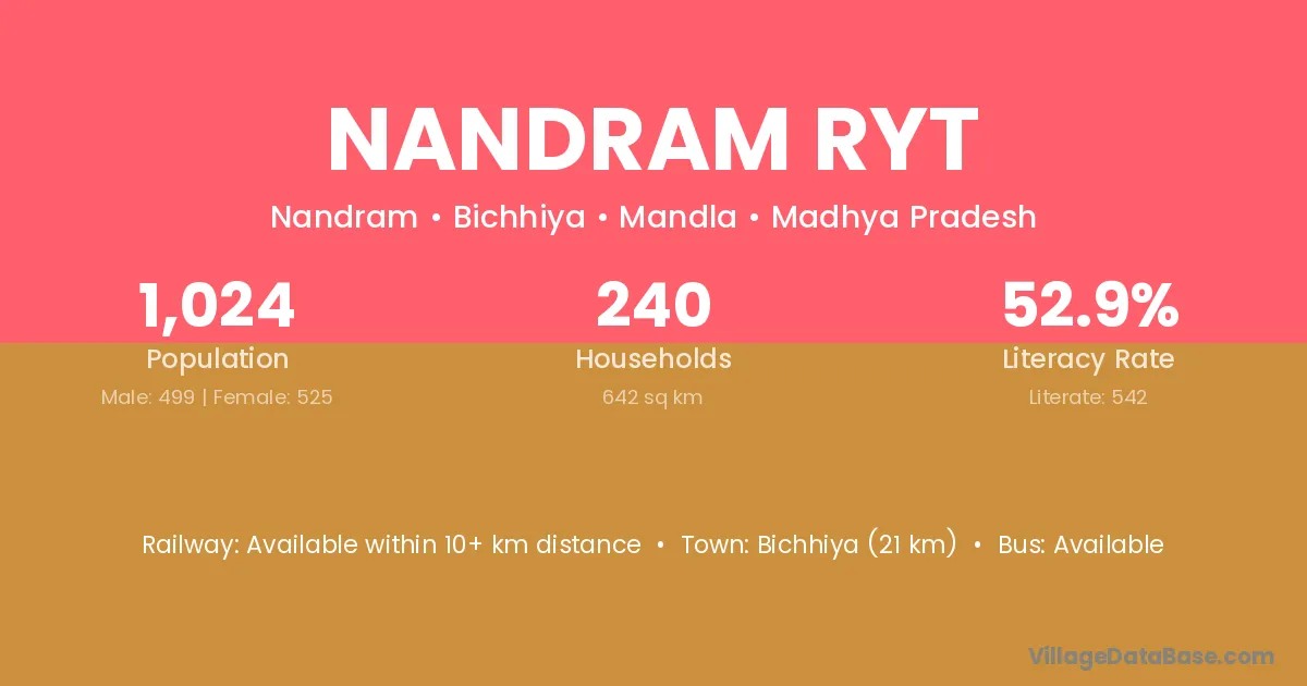 Nandram Ryt village has a total population of 1,024 people, of which 499 are males and 525 are females.