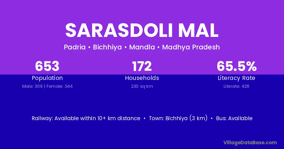 Bichhiya (3 km) is the nearest town to Sarasdoli Mal village for major economic activities and is located approximately 3 km away.