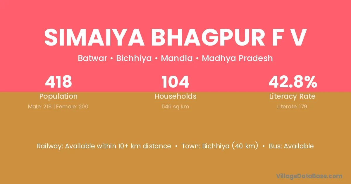Bichhiya (40 km) is the nearest town to Simaiya Bhagpur F V village for major economic activities and is located approximately 40 km away.