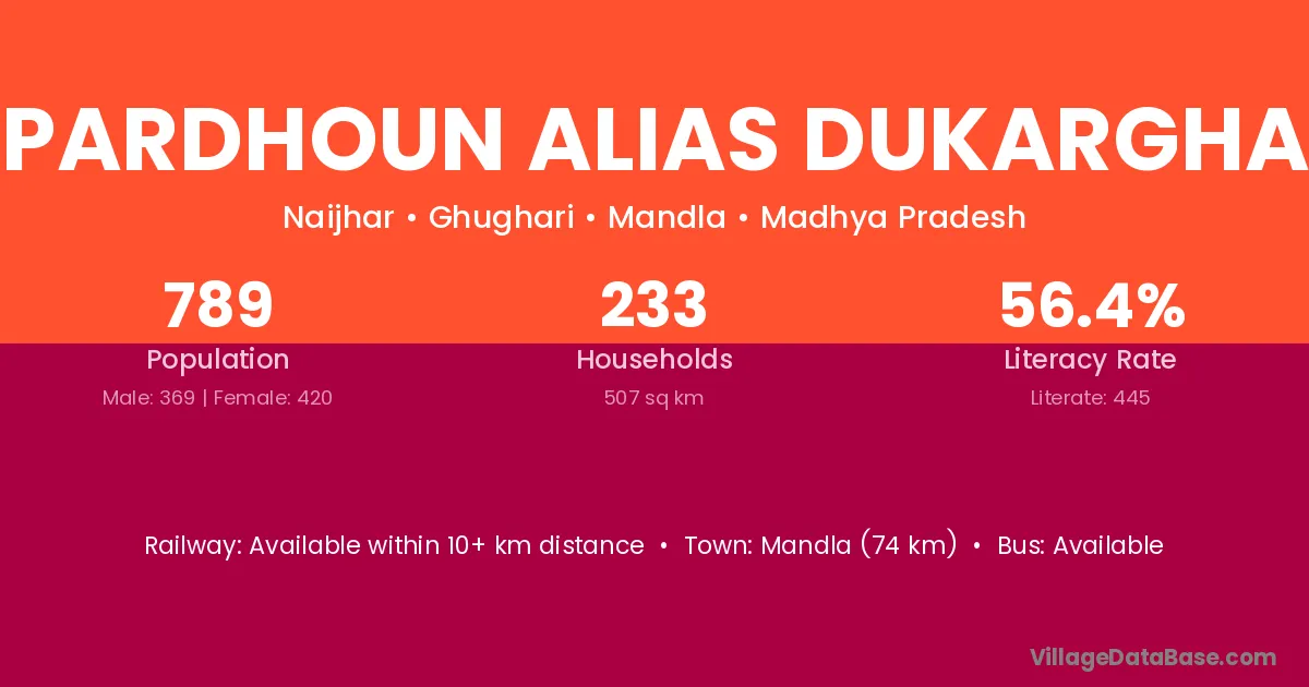Pipardhoun Alias Dukarghati village has a total population of 789 people, of which 369 are males and 420 are females.
