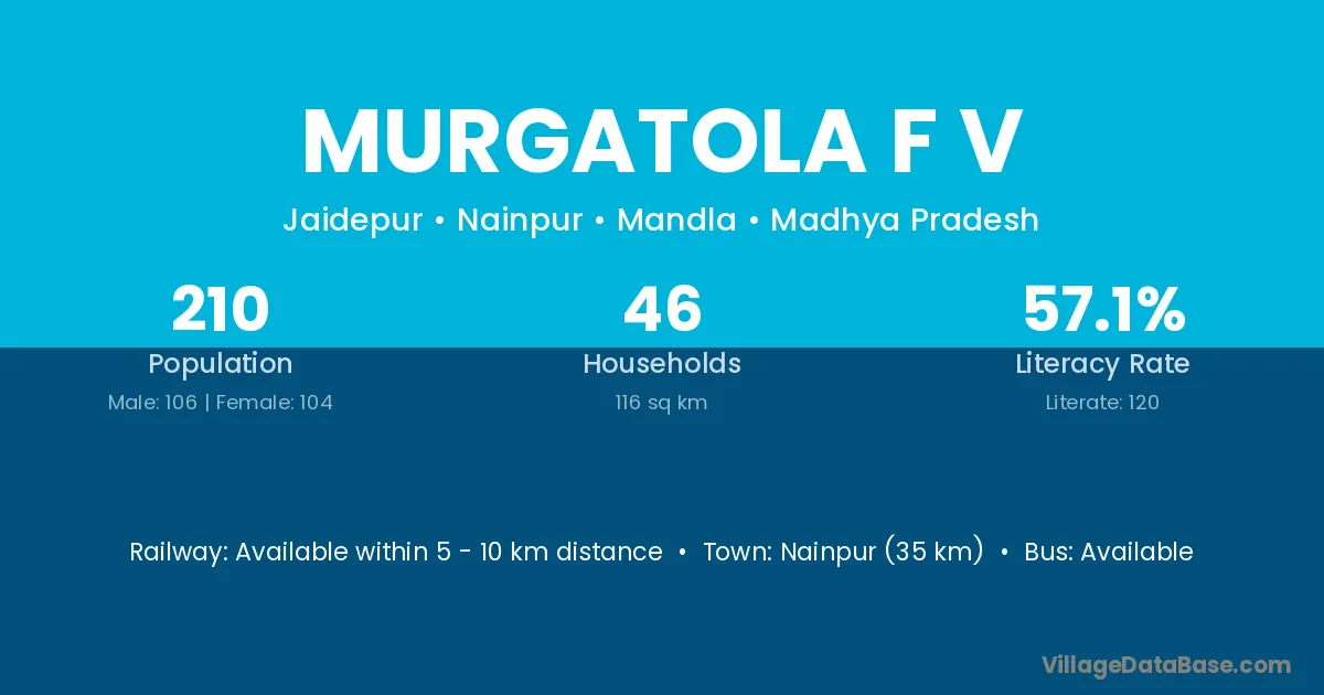 Nainpur (35 km) is the nearest town to Murgatola F V village for major economic activities and is located approximately 35 km away.