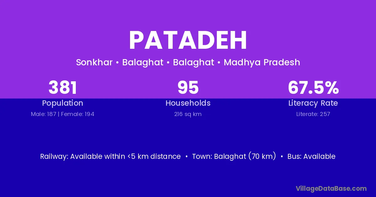 Nainpur (10 km) is the nearest town to Patadeh village for major economic activities and is located approximately 10 km away.