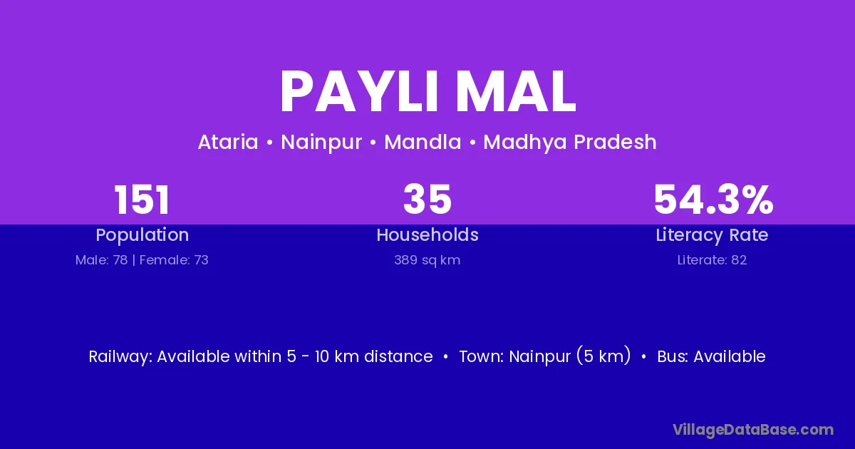 Nainpur (5 km) is the nearest town to Payli Mal village for major economic activities and is located approximately 5 km away.