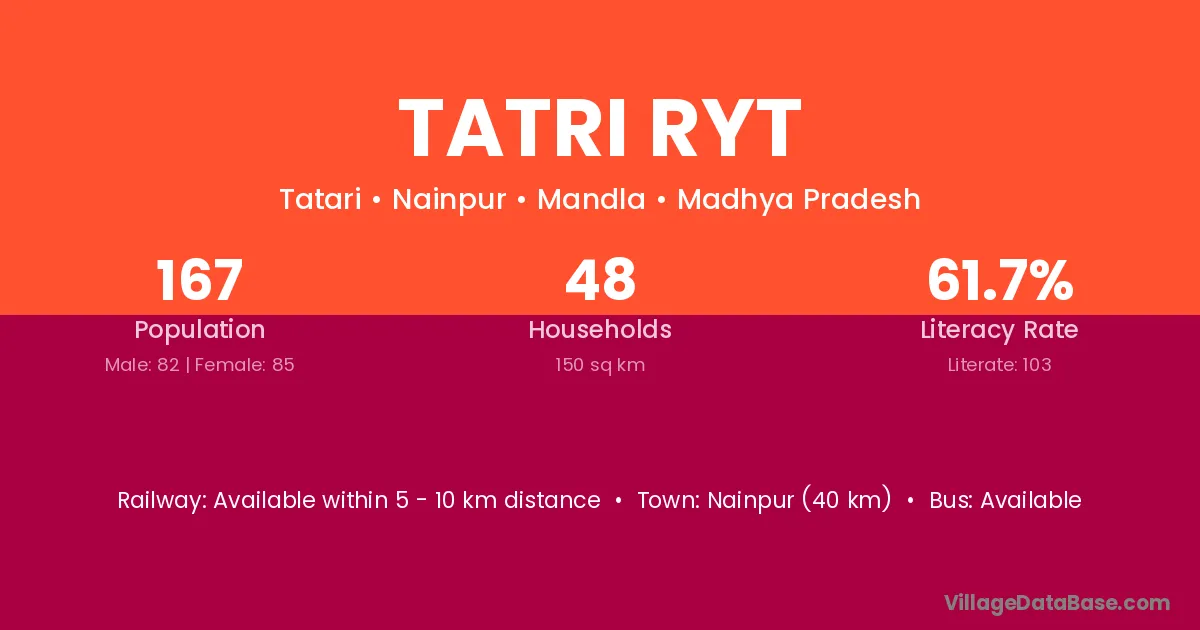 Nainpur (40 km) is the nearest town to Tatri Ryt village for major economic activities and is located approximately 40 km away.