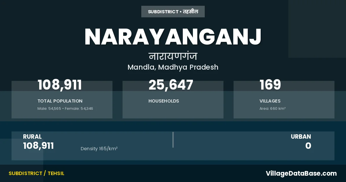 Narayanganj is a town and Tehsil in the Mandla district of the Madhya Pradesh. In India, a Tehsil is a subdivision of a district responsible for the administration and revenue collection of a specific area within the district. Tehsils play a crucial role in the local governance structure, contributing significantly to the development and administration of their communities.