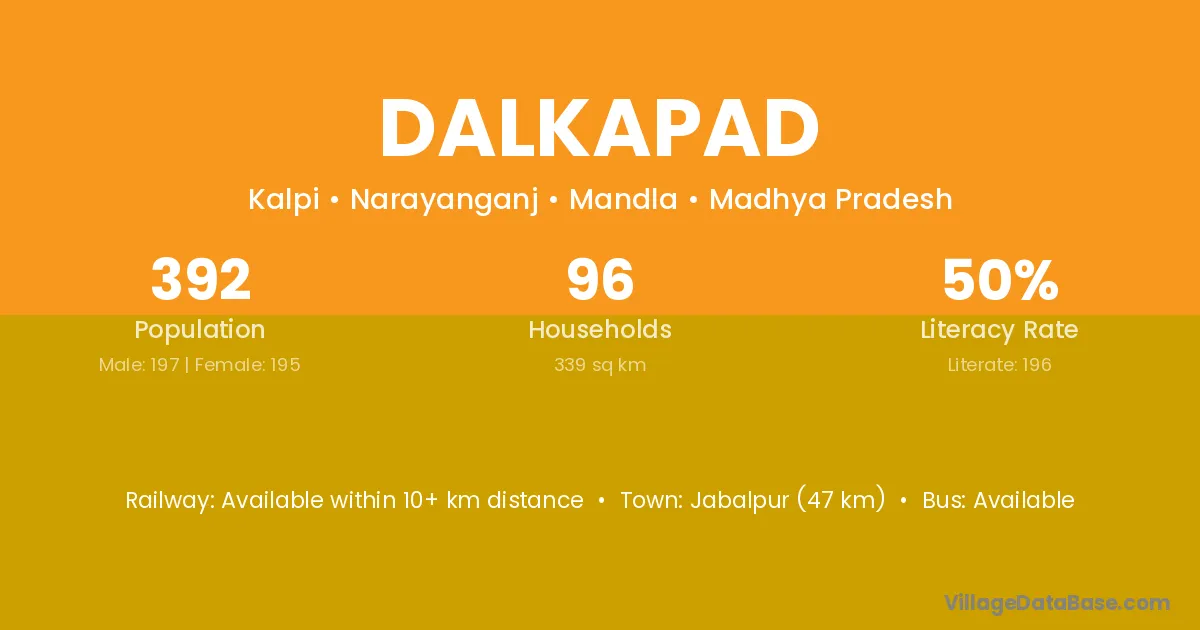 Jabalpur (47 km) is the nearest town to Dalkapad village for major economic activities and is located approximately 47 km away.