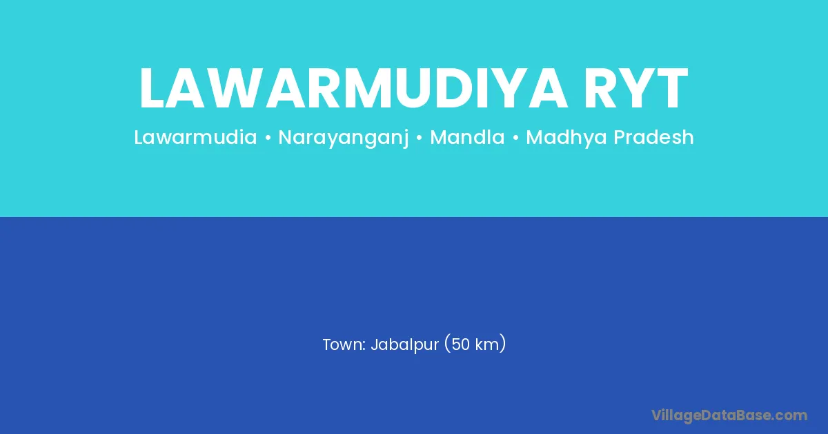 Jabalpur (50 km) is the nearest town to Lawarmudiya Ryt village for major economic activities and is located approximately 50 km away.