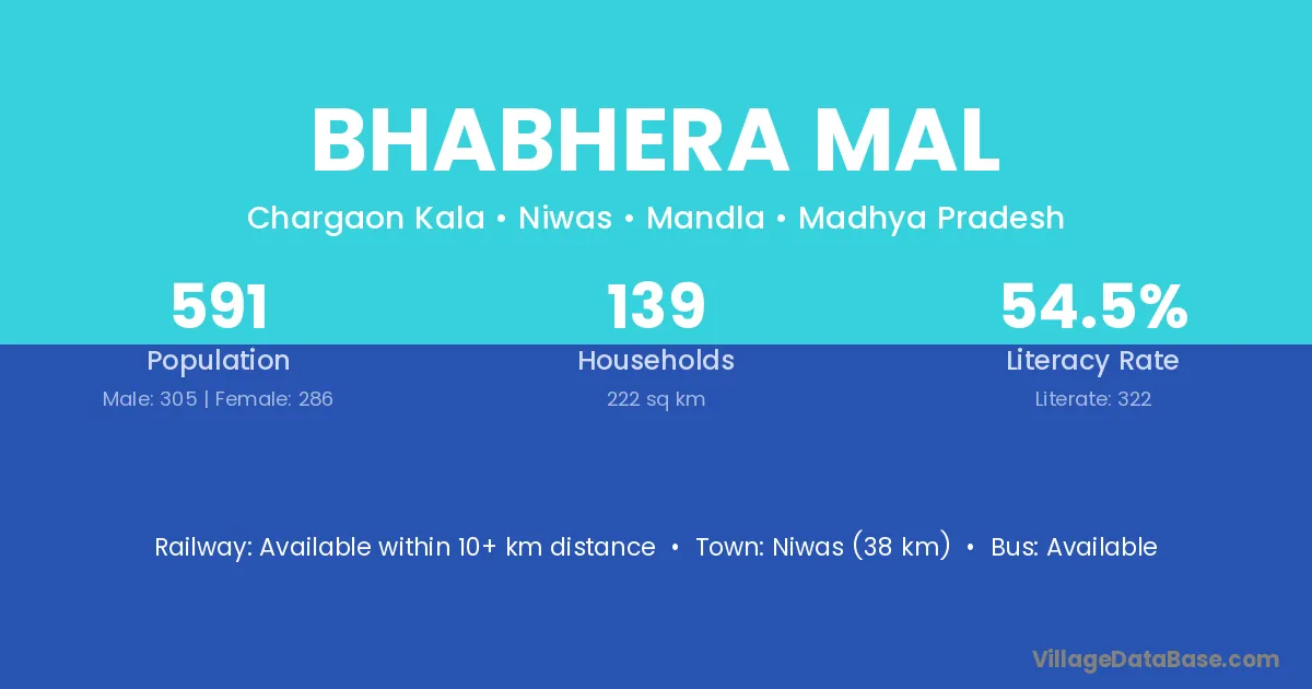 Niwas (38 km) is the nearest town to Bhabhera Mal village for major economic activities and is located approximately 38 km away.