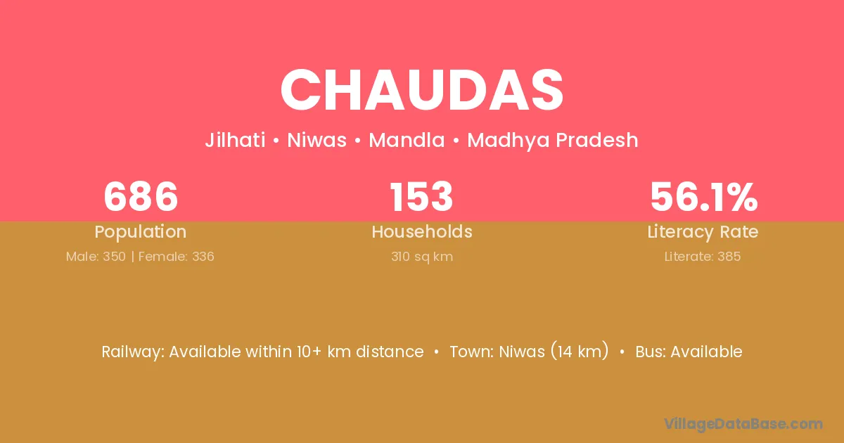 Niwas (14 km) is the nearest town to Chaudas village for major economic activities and is located approximately 14 km away.