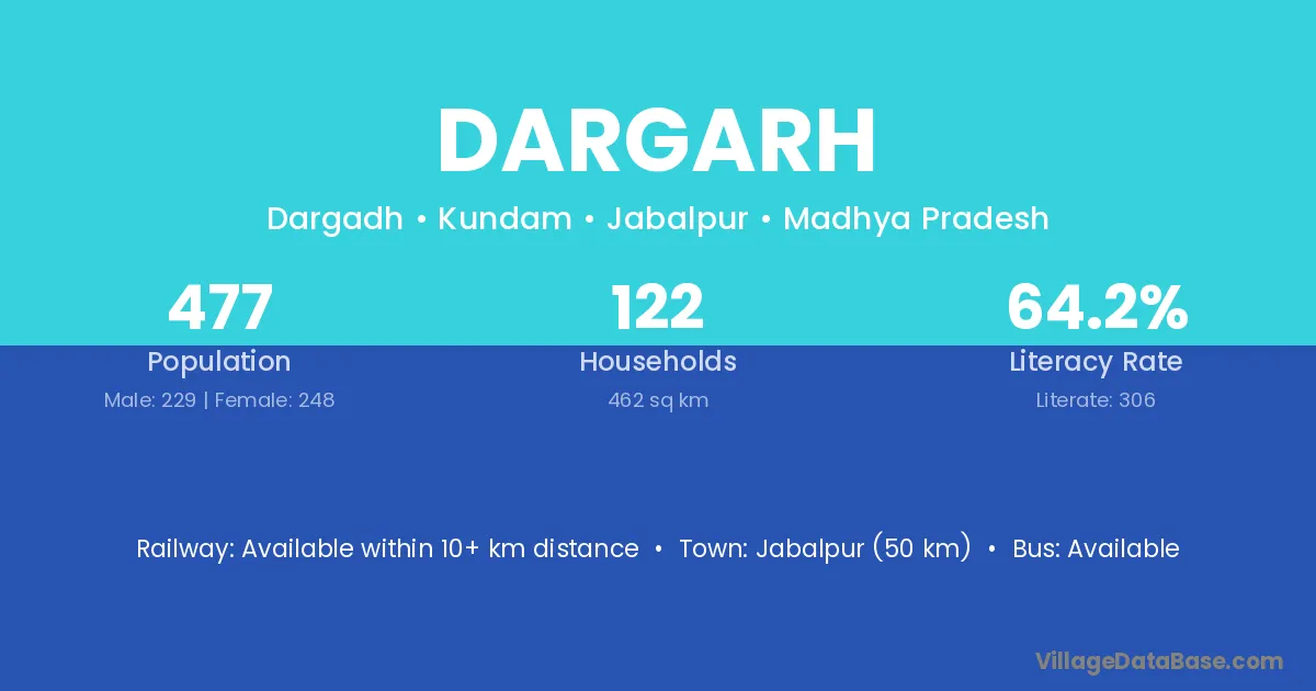 Niwas (26 km) is the nearest town to Dargarh village for major economic activities and is located approximately 26 km away.