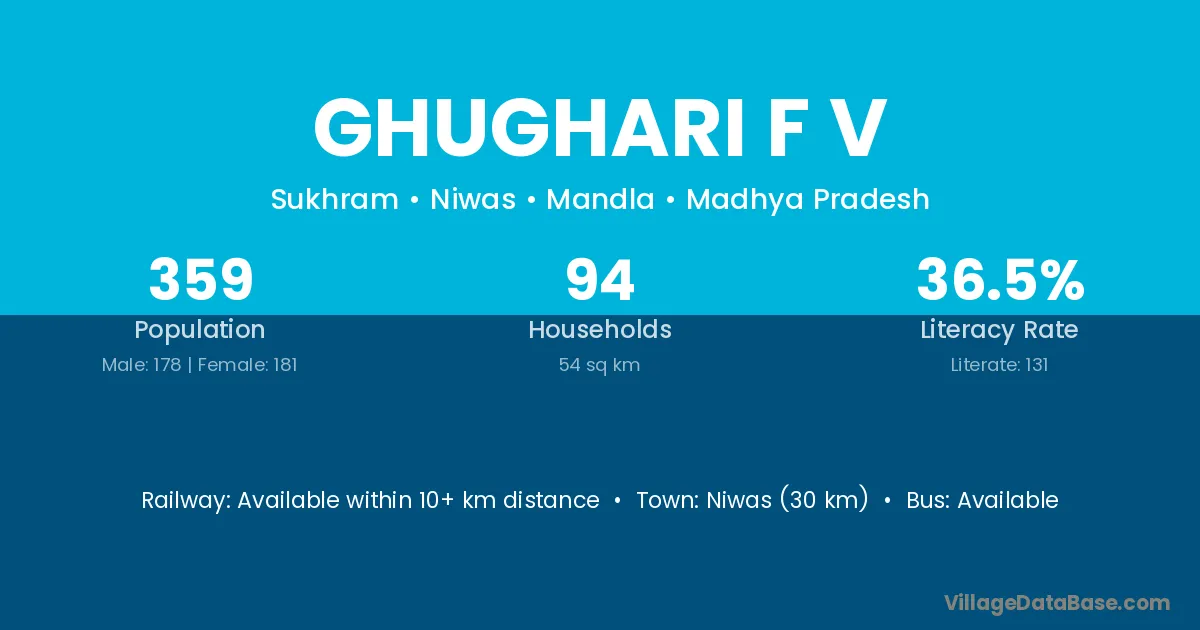 Ghughari F V village has a total population of 359 people, of which 178 are males and 181 are females.