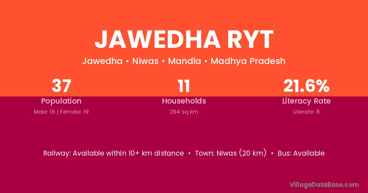 Niwas (20 km) is the nearest town to Jawedha Ryt village for major economic activities and is located approximately 20 km away.