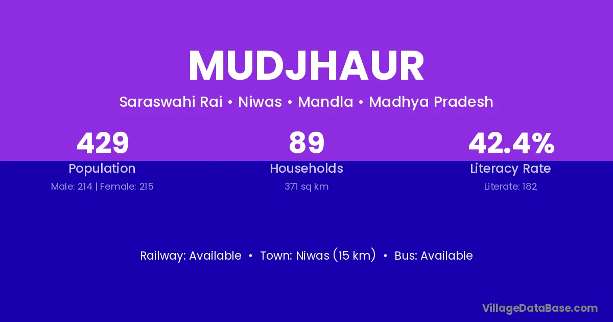 Niwas (15 km) is the nearest town to Mudjhaur village for major economic activities and is located approximately 15 km away.