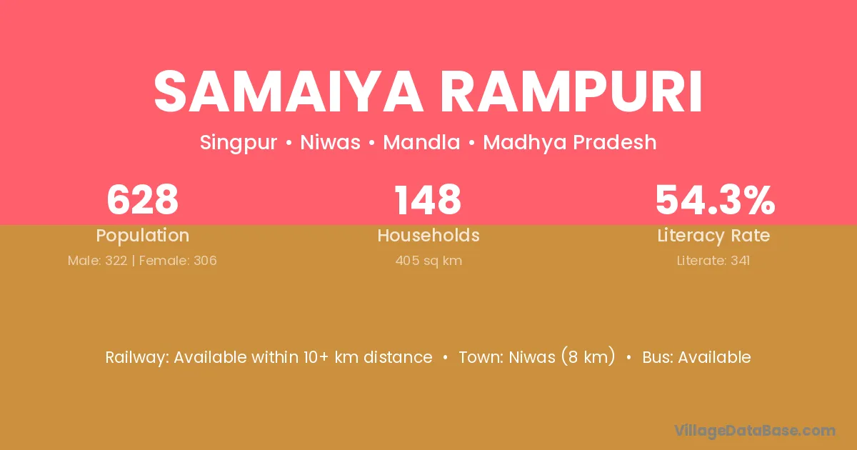 Niwas (8 km) is the nearest town to Samaiya Rampuri village for major economic activities and is located approximately 8 km away.