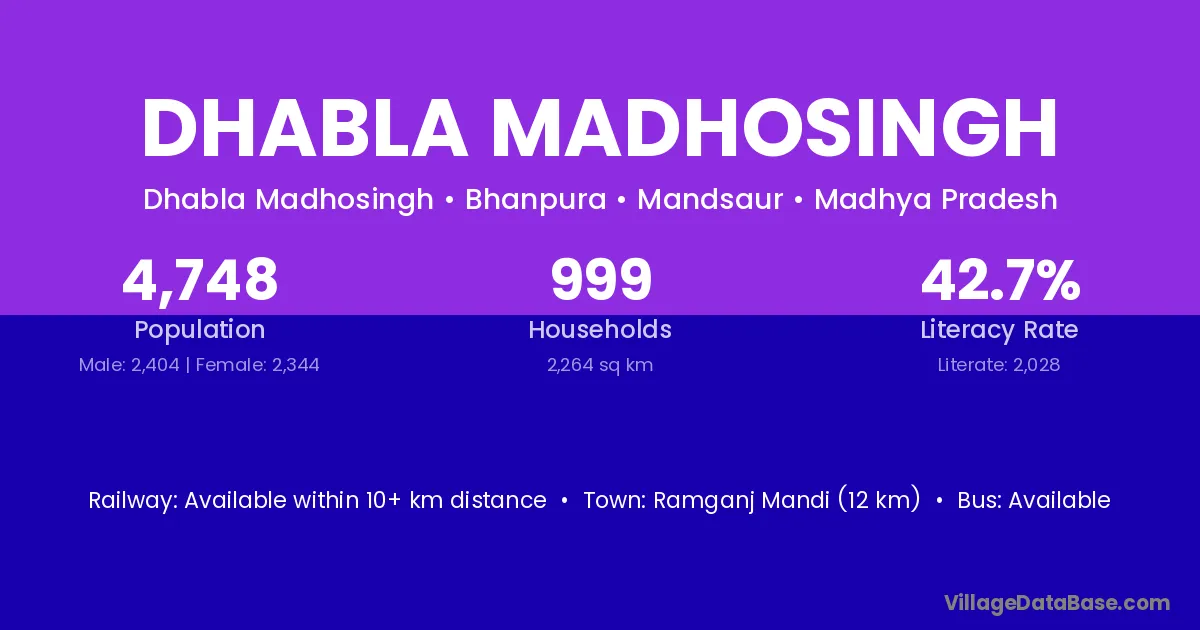 Ramganj Mandi (12 km) is the nearest town to Dhabla Madhosingh village for major economic activities and is located approximately 12 km away.