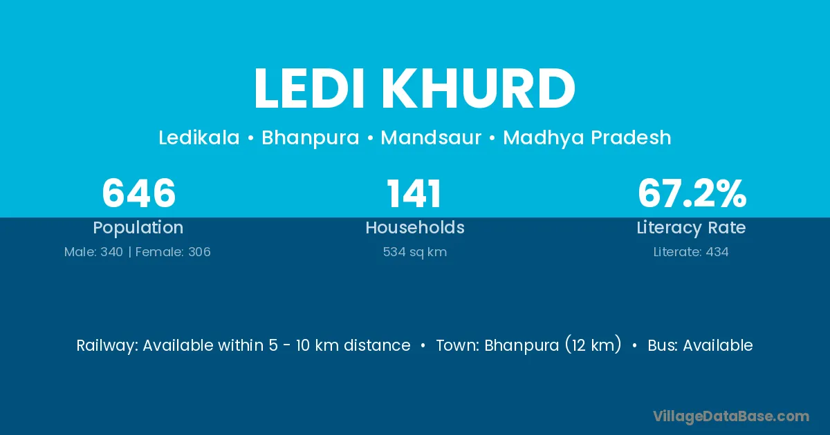 Bhanpura (12 km) is the nearest town to Ledi Khurd village for major economic activities and is located approximately 12 km away.