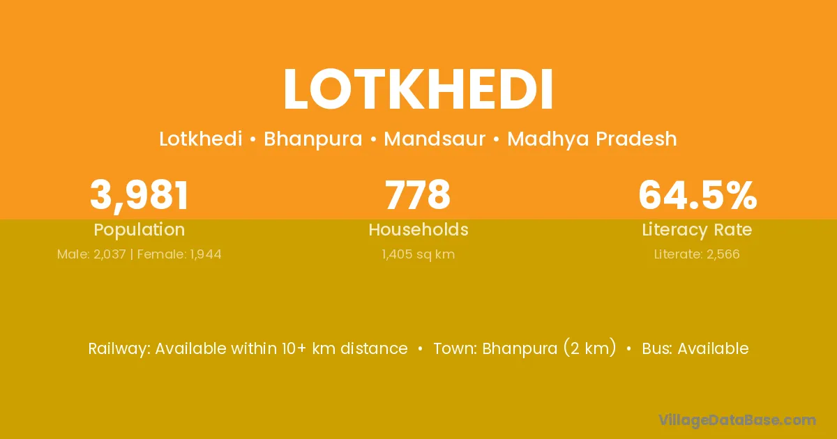 Bhanpura (2 km) is the nearest town to Lotkhedi village for major economic activities and is located approximately 2 km away.