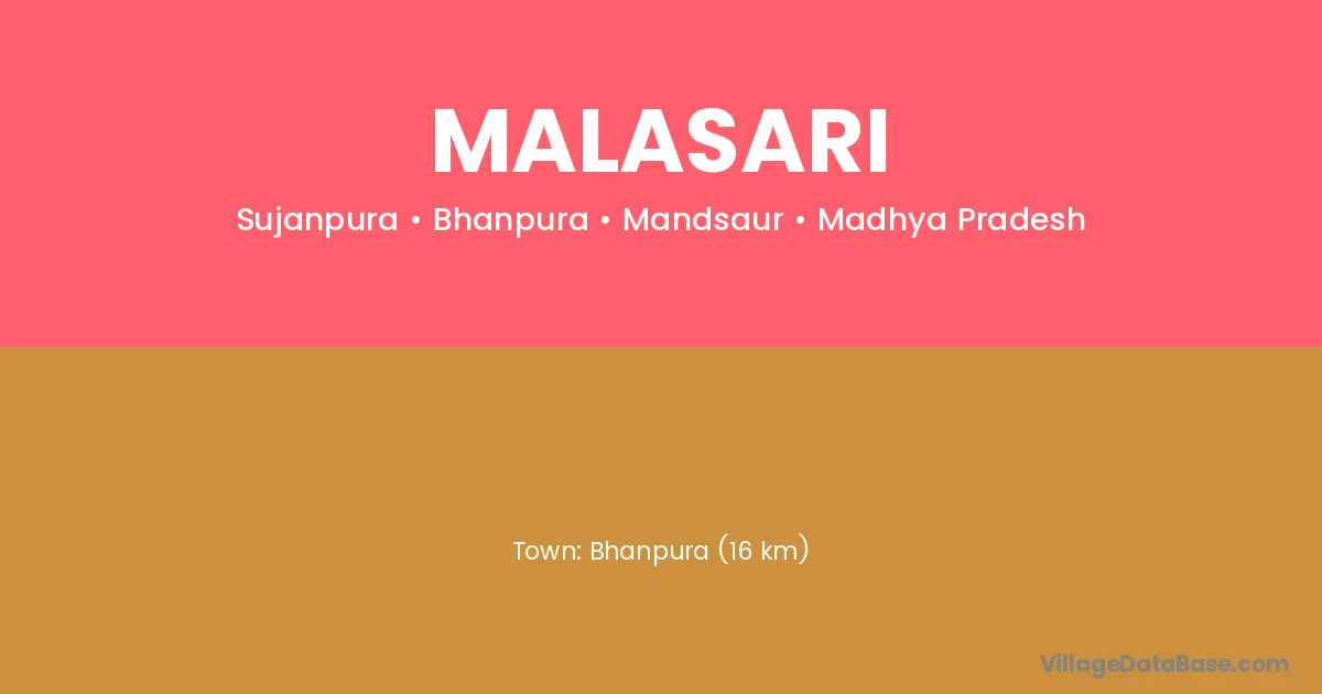 Bhanpura (16 km) is the nearest town to Malasari village for major economic activities and is located approximately 16 km away.