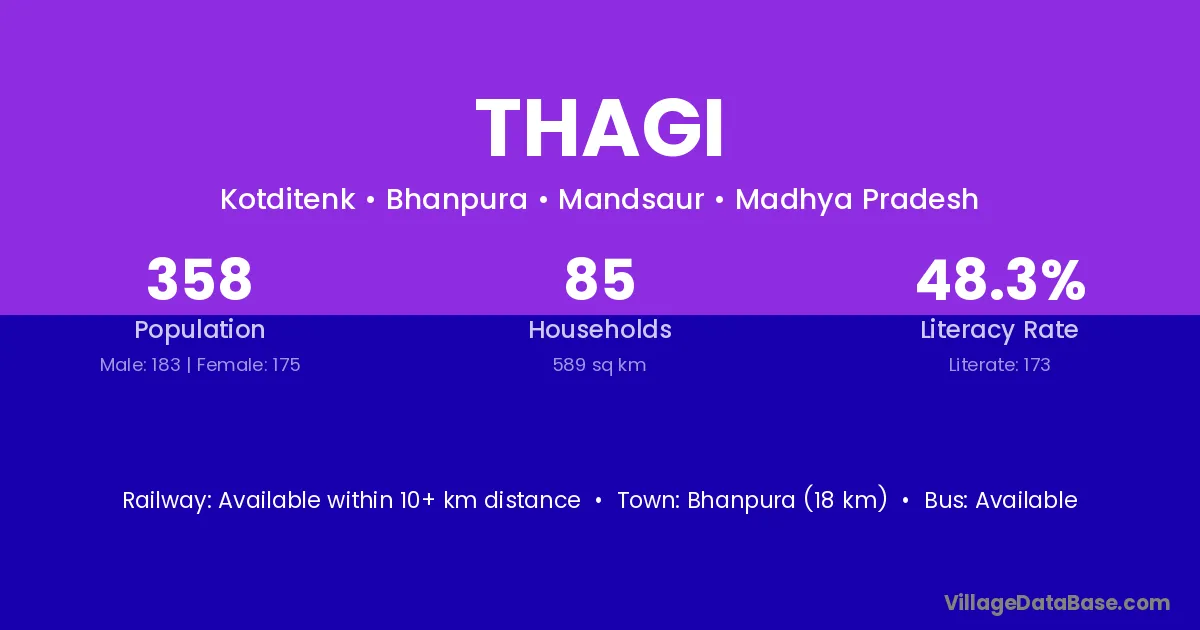 Bhanpura (18 km) is the nearest town to Thagi village for major economic activities and is located approximately 18 km away.