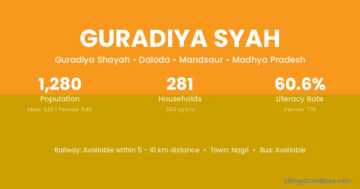 Guradiya Syah village has a total population of 1,280 people, of which 635 are males and 645 are females.