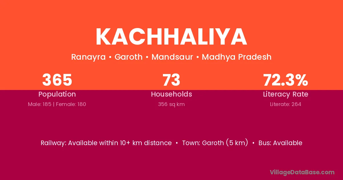 Kachhaliya village has a total population of 365 people, of which 185 are males and 180 are females.
