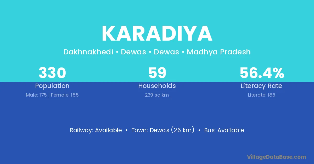 Garoth (25 km) is the nearest town to Karadiya village for major economic activities and is located approximately 25 km away.