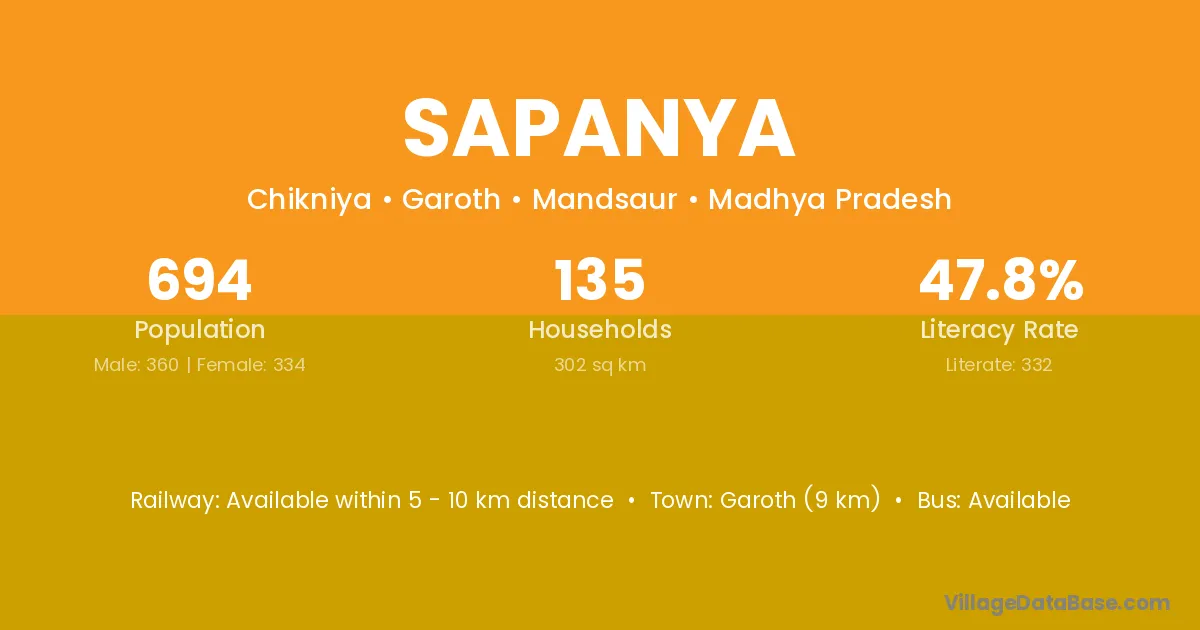Garoth (9 km) is the nearest town to Sapanya village for major economic activities and is located approximately 9 km away.