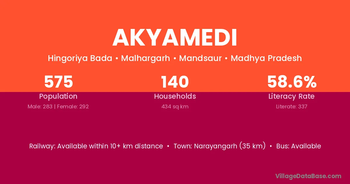 Akyamedi village has a total population of 575 people, of which 283 are males and 292 are females.