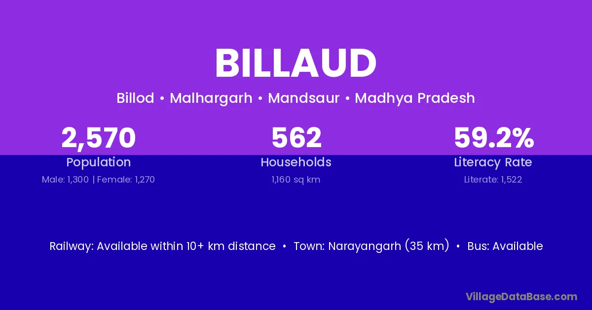 Narayangarh (35 km) is the nearest town to Billaud village for major economic activities and is located approximately 35 km away.