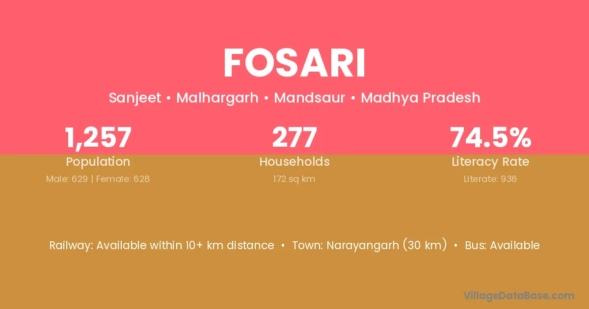 Narayangarh (30 km) is the nearest town to Fosari village for major economic activities and is located approximately 30 km away.
