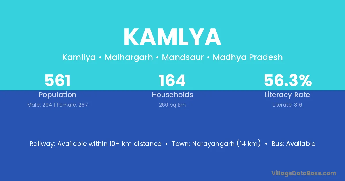 Kamlya village has a total population of 561 people, of which 294 are males and 267 are females.